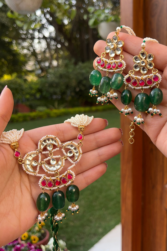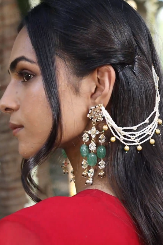 DETACHABLE EMERALD GREEN KUNDANKARI KAANCHAIN EARRINGS