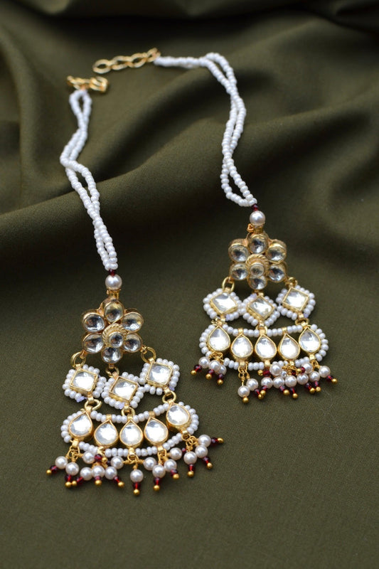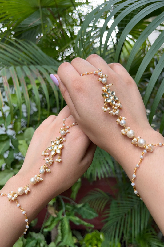 POLKI FLOWER PEARL CHAIN HATHPHOOL (PAIR)
