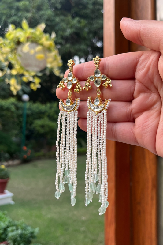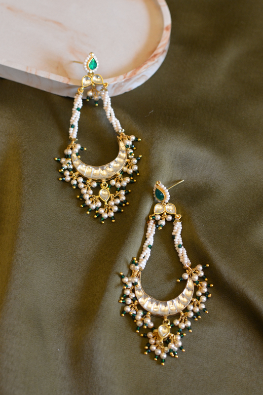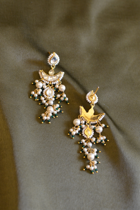 PEARL DRAPE POLKI EARRINGS- GREEN