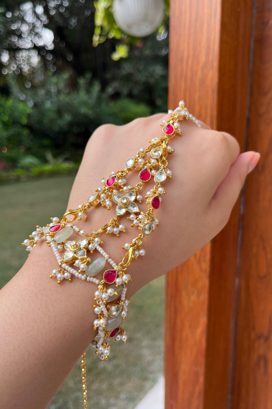 RED ONYX KUNDAN HATHPHOOL (PAIR)