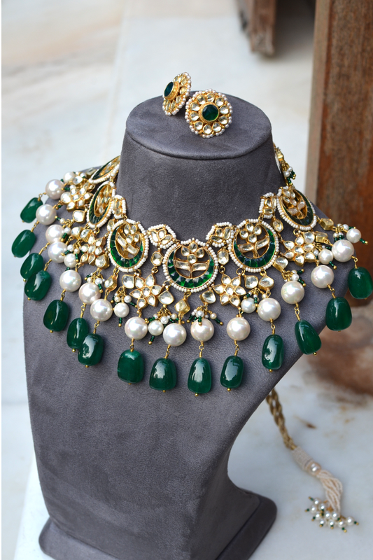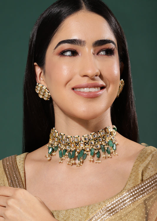 STATEMENT EMERALD BRIDAL CHOKER SET WITH STUDS
