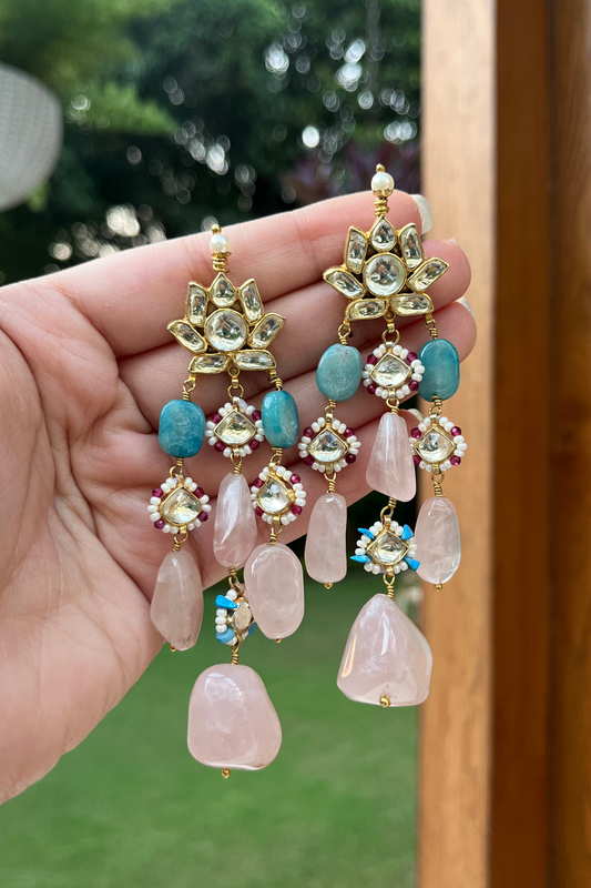 SHRIYA SARAN- KAMAL JAAL EARRINGS - ROSE QUARTZ