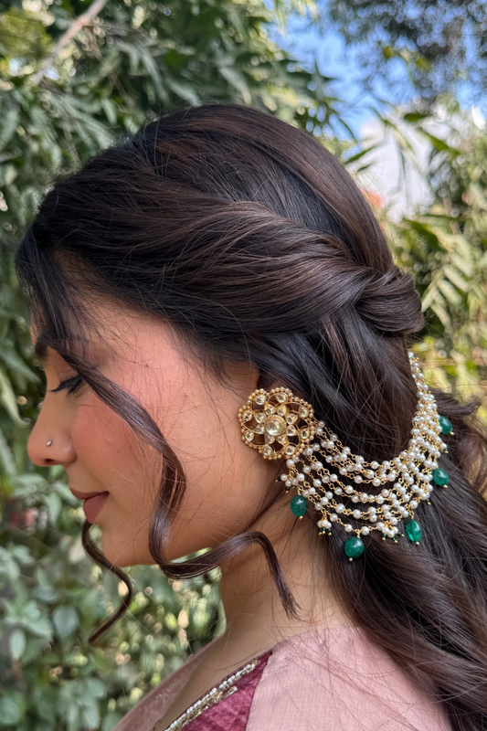 POLKI MOTI HAIR CHAIN- GREEN & WHITE