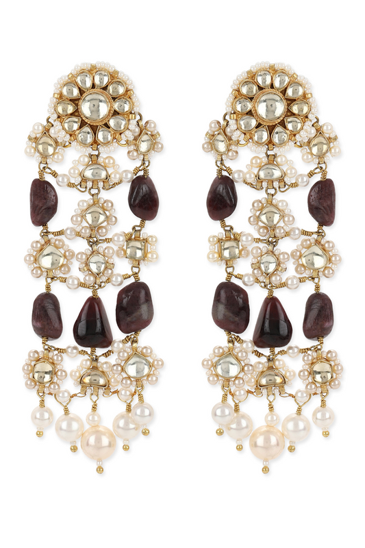 POLKI STONE DANGLER EARRINGS- MULTICOLOURED