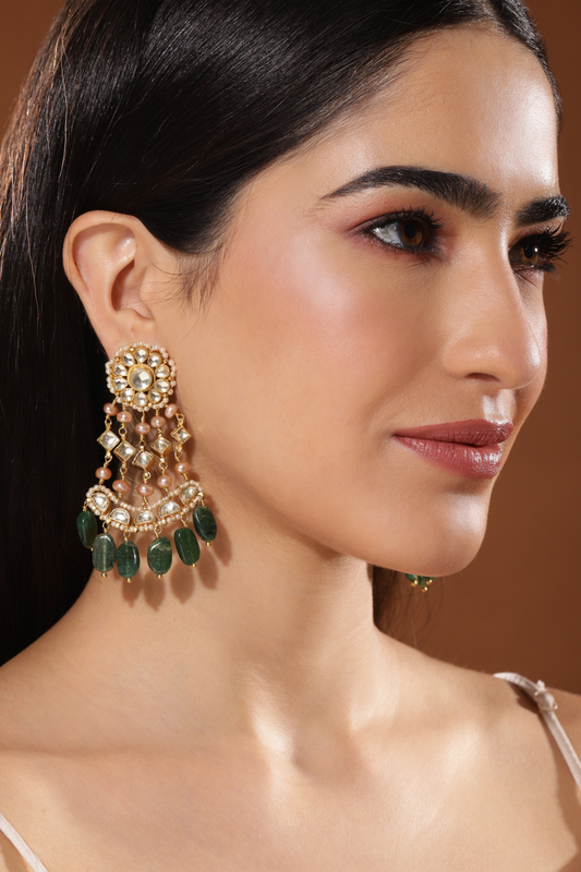 POLKI THREE DIYA EARRINGS - PINK AND GREEN