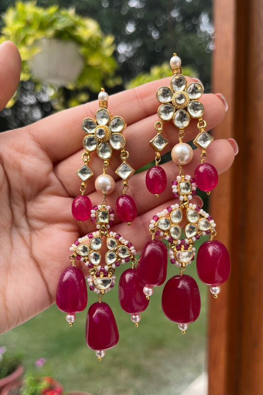 RED PINK SUN TOPS KUNDAN EARRINGS