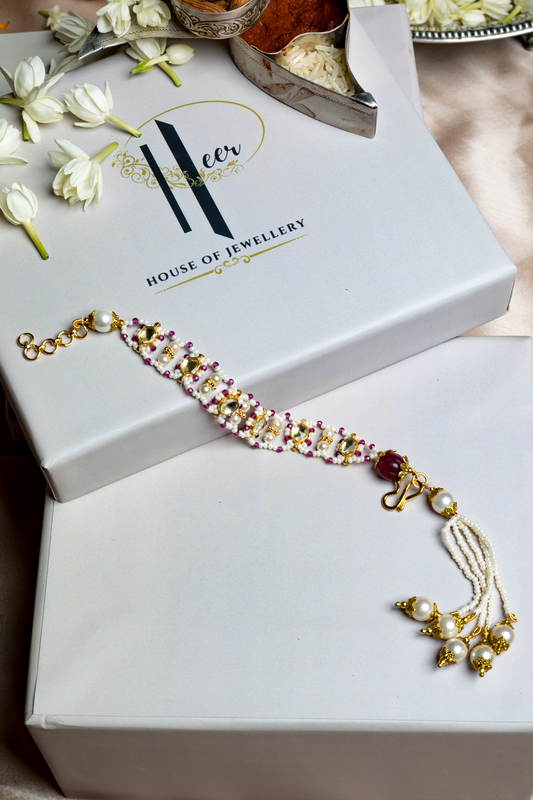 RESHAMI PEARL JAAL BRACELET/CHOKER - RED