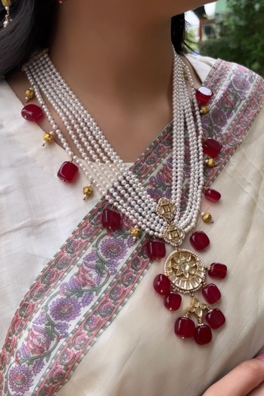 RESHAMI PEARL JAAL CHOKER/BRACELET - RED