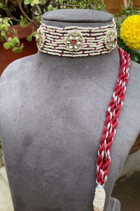 SILVER POLKI PEARL CHOKER