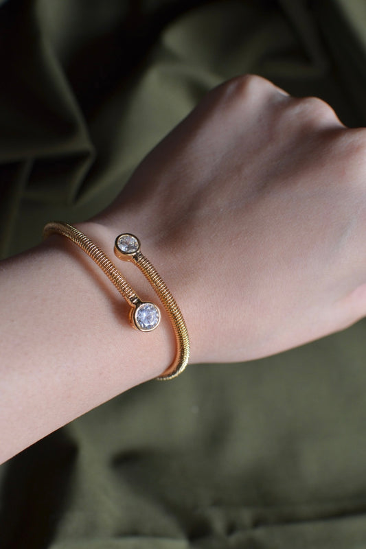 CRISS-CROSS GOLD CRYSTAL CUFF BRACELET