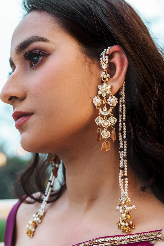 DETACHABLE DOMUKHI KUNDANKARI EARRINGS - AMBER