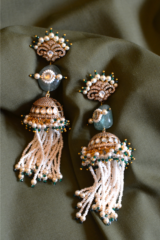 DIAMANTÉ CROWN SAGE TASSEL JHUMKIS