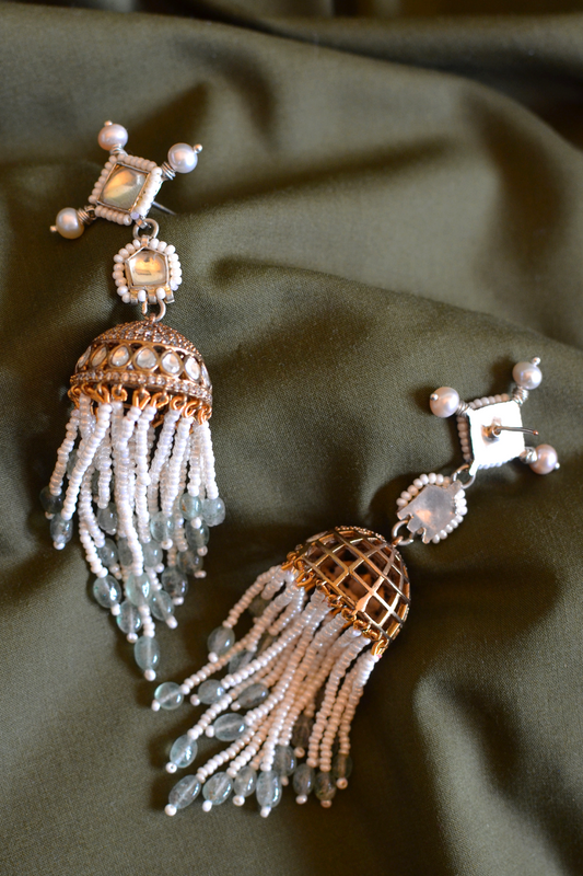DIAMANTÉ SAGE TASSEL JHUMKIS