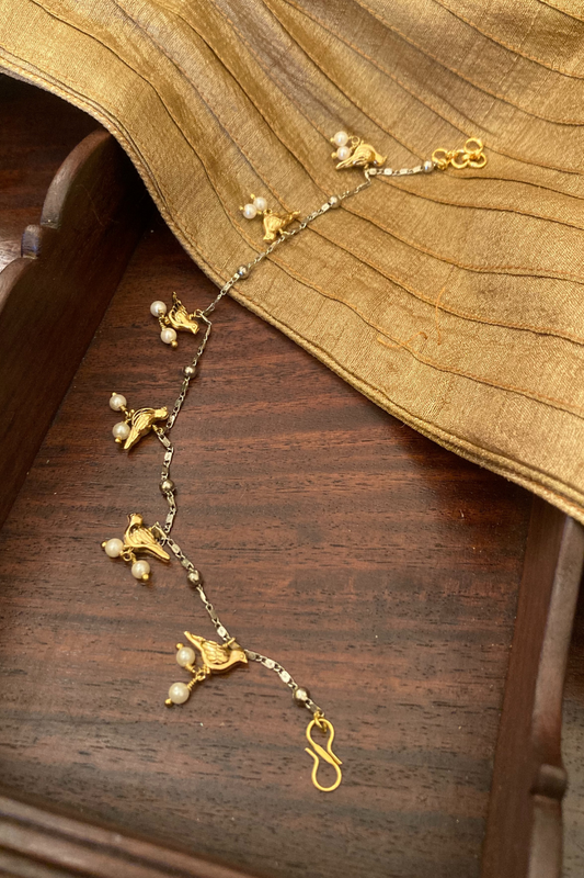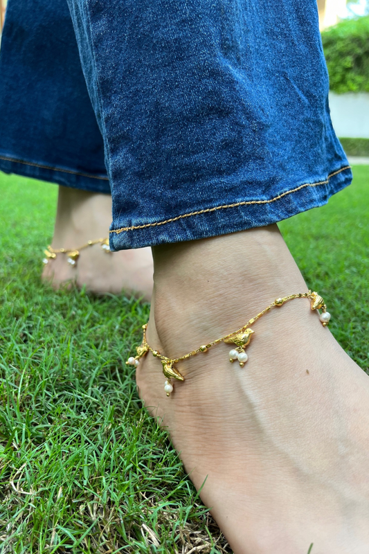 GOLD COLOUR HUMMINGBIRD PEARL ANKLETS (PAIR)