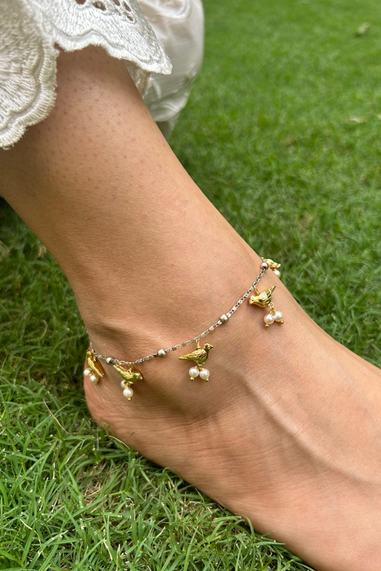 SILVER COLOUR BIRD ANKLETS (PAIR)