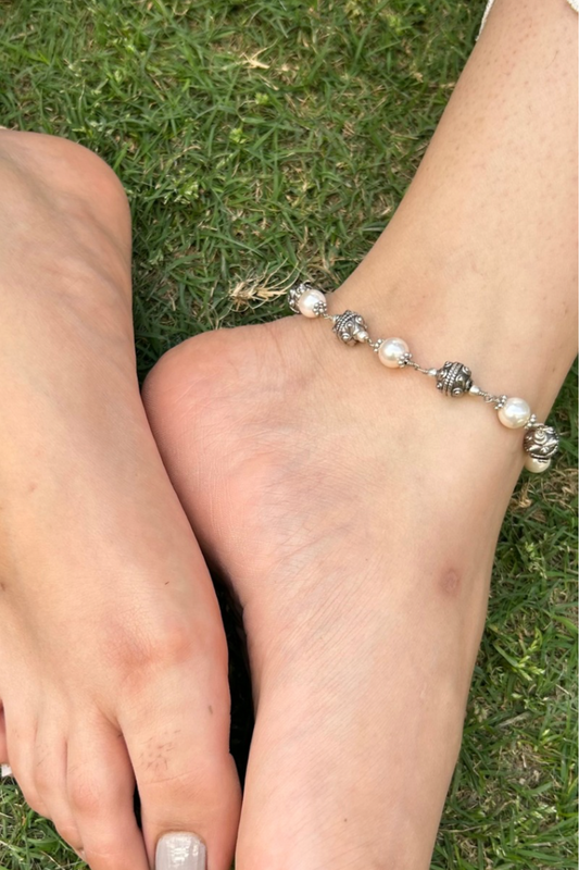 CARVED BEADS PEARL ANKLETS (PAIR)