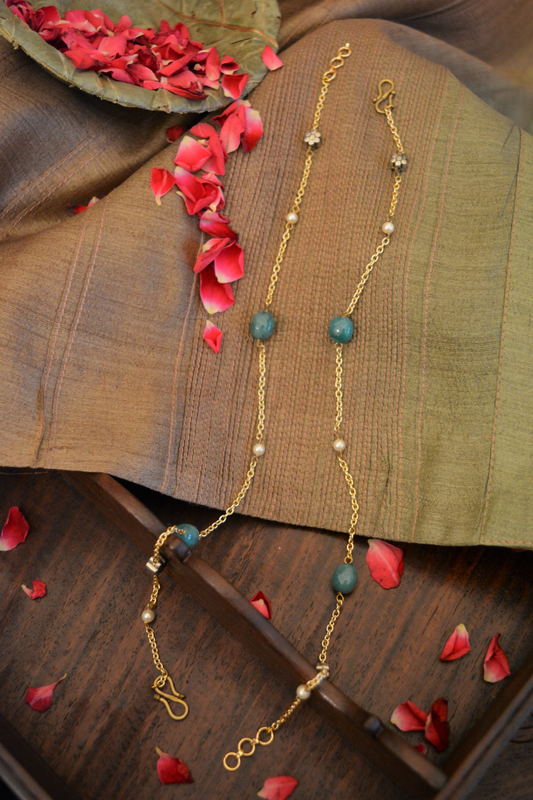 FLORAL GREEN ONYX ANKLETS (PAIR)