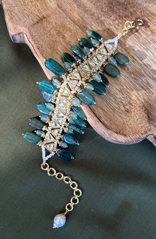 GREEN ONYX KUNDAN HATHPHOOL (SINGLE)