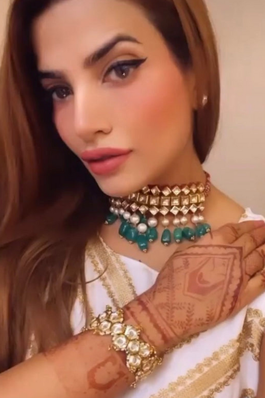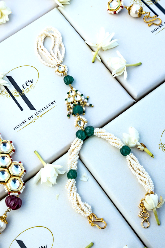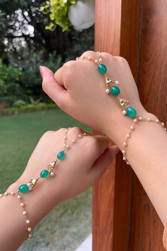 GREEN ONYX KUNDAN HATHPHOOL (PAIR)