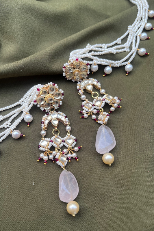 ROSE QUARTZ DANGLERS WITH KAANCHAIN