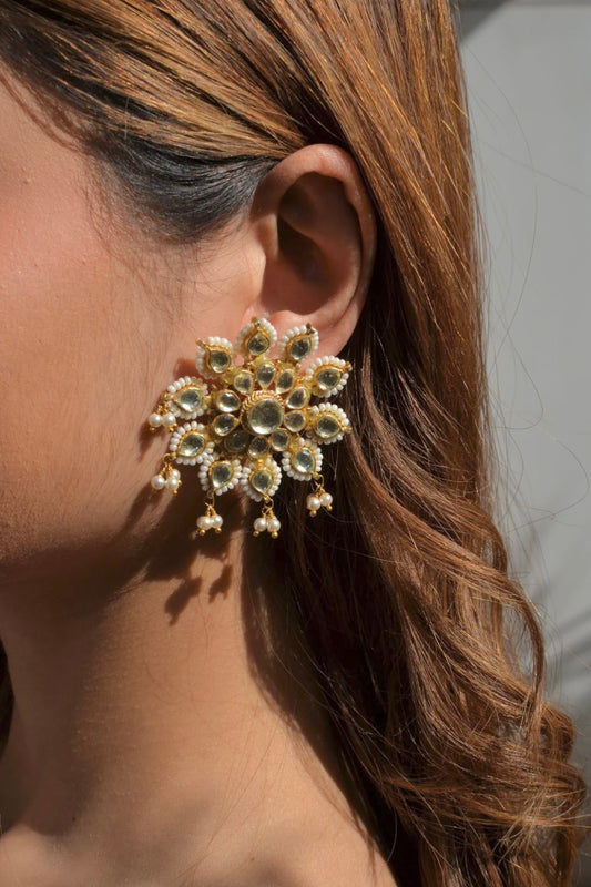 RED PEARL DEVASENA KUNDAN EARRINGS