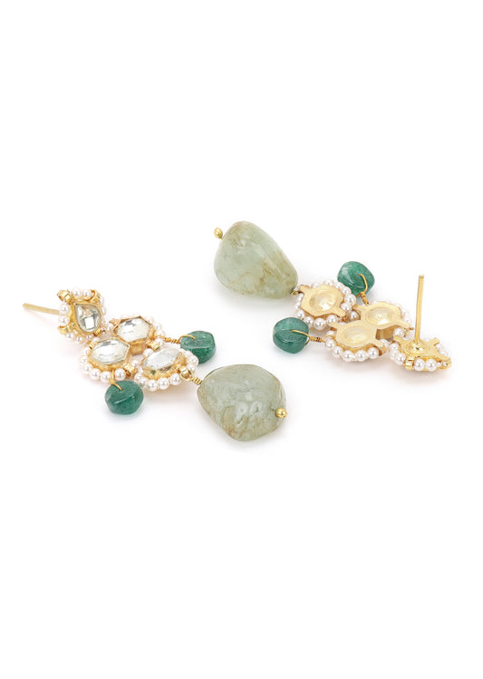 EMERALD GREEN FLOWER POLKI DANGLERS