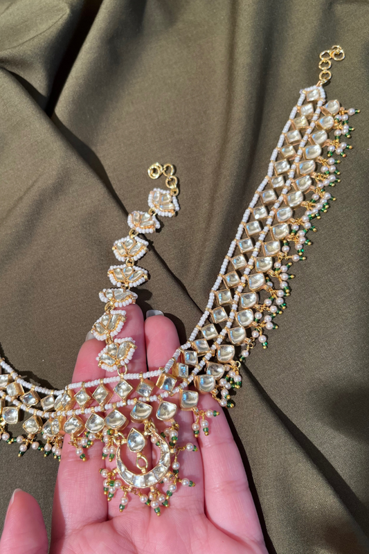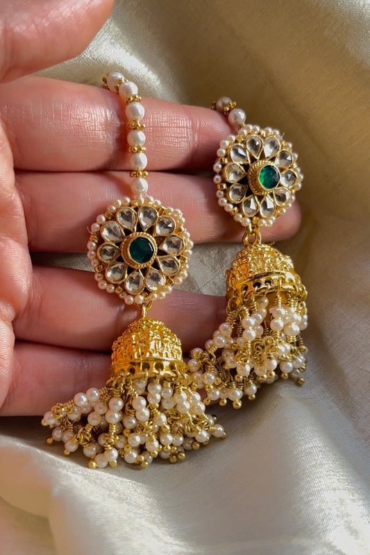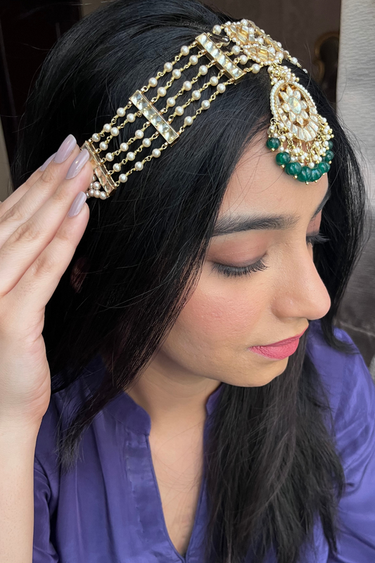 BRIDAL PEARL AHMEDABADI POLKI MATHAPATTI-CUM-NECKLACE - GREEN