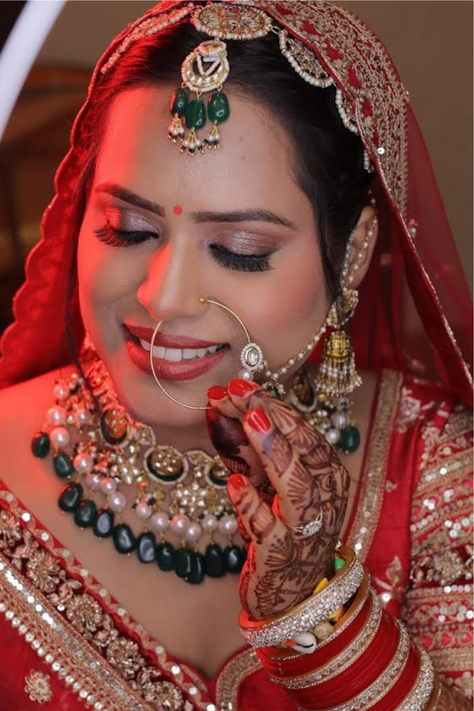 STATEMENT EMERALD BRIDAL CHOKER SET WITH JHUMKIS & MANGTIKA