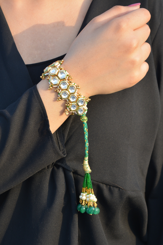 GREEN ONYX KUNDAN HATHPHOOL (PAIR)