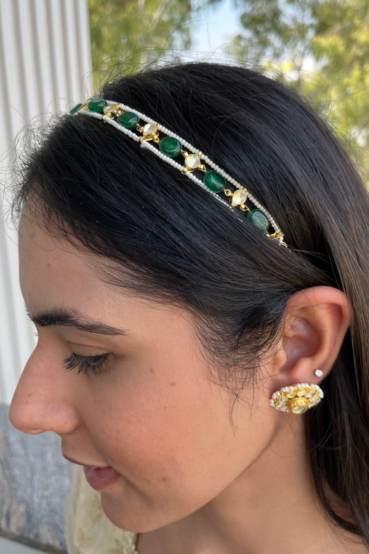 EMERALD GREEN CHOKER CUM SHEESHPATTI WITH STUDS