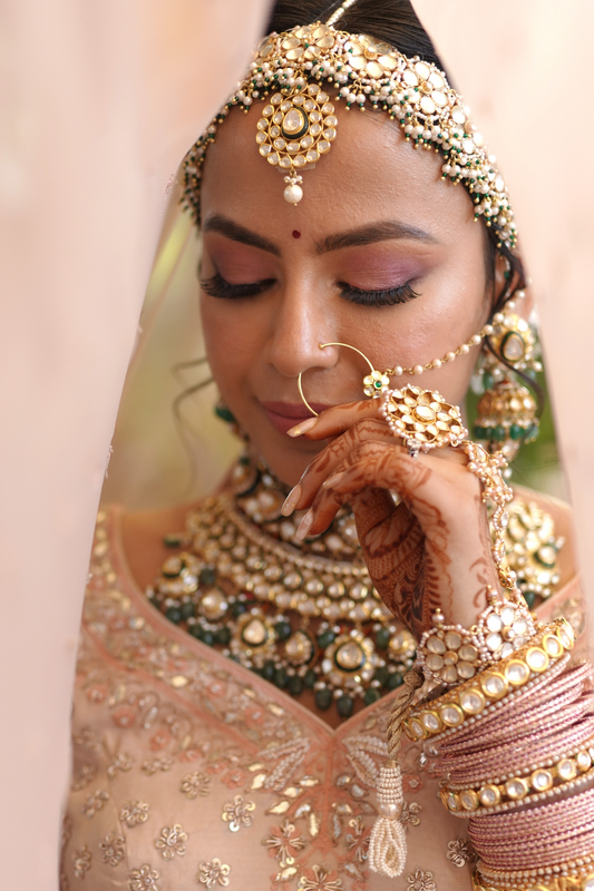 BRIDAL TRADITIONAL VERSATILE MATHAPATTI-CUM-NECKLACE - GREEN (Detachable dori lock and hair parting chain)