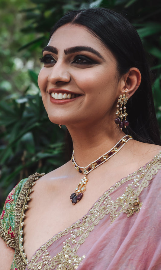 GUL NECKLACE/ SHEESHPATTI SET - RUBY RED
