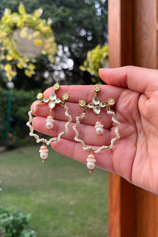 SCALLOPED PEARL HOOPS- POLKI