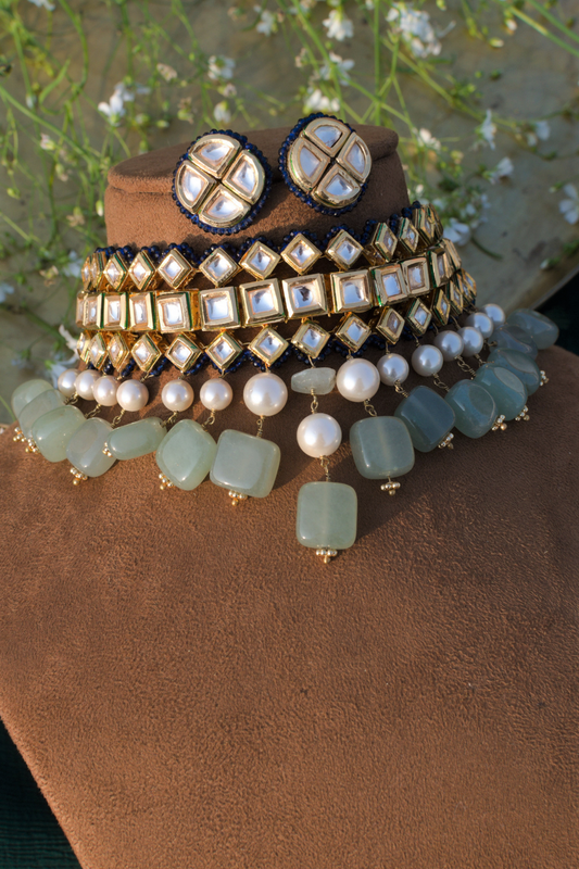 KUNDANKARI RAANI HAAR - SAGE GREEN AND PINK