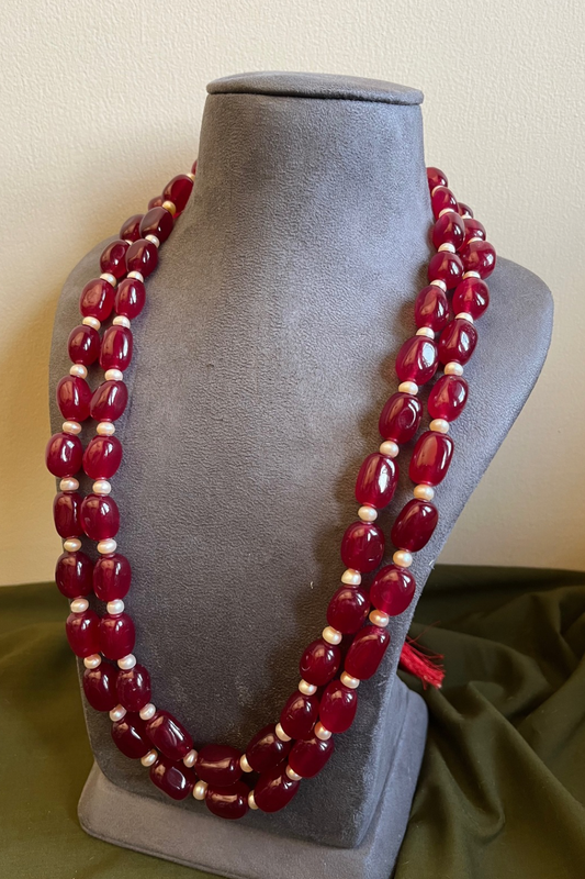 GUL NECKLACE/ SHEESHPATTI SET - RUBY RED