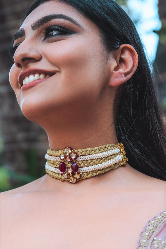 RESHAMI PEARL JAAL BRACELET/CHOKER - RED