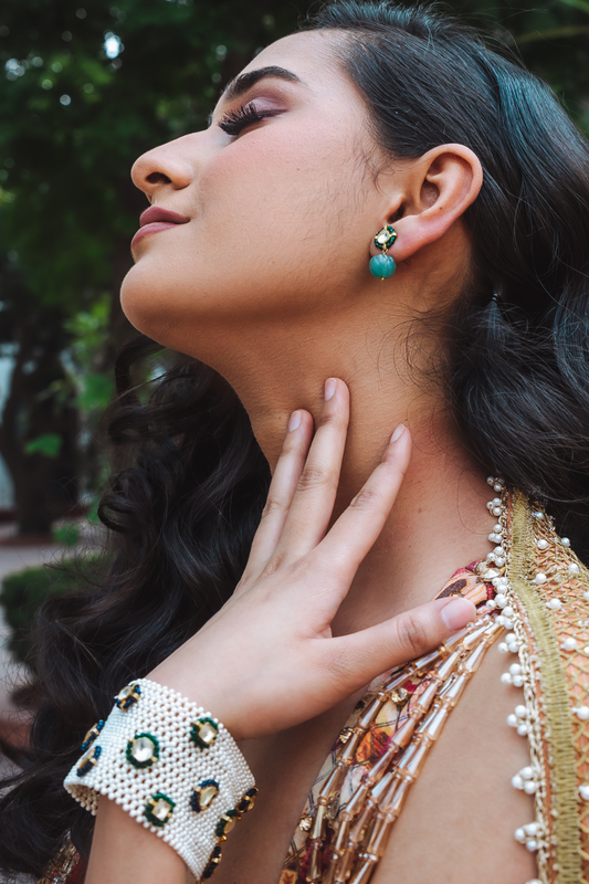 RESHAMI POLKI BRACELET/CHOKER SET - GREEN