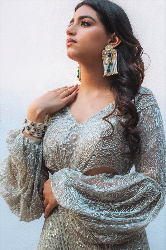 CHEED JAALI CHOKER/BRACELET SET - GREEN & BLUE