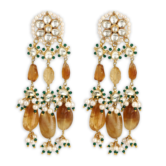 PHOOLJALI PEARLS EARRINGS - CITRINE AND GOLD