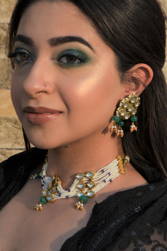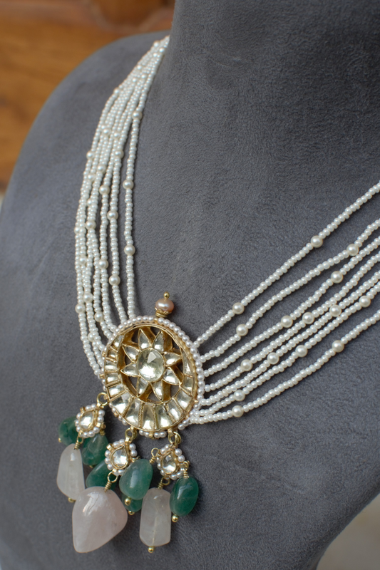 CHANDRAMA NECKLACE SET - PINK & GREEN STONES