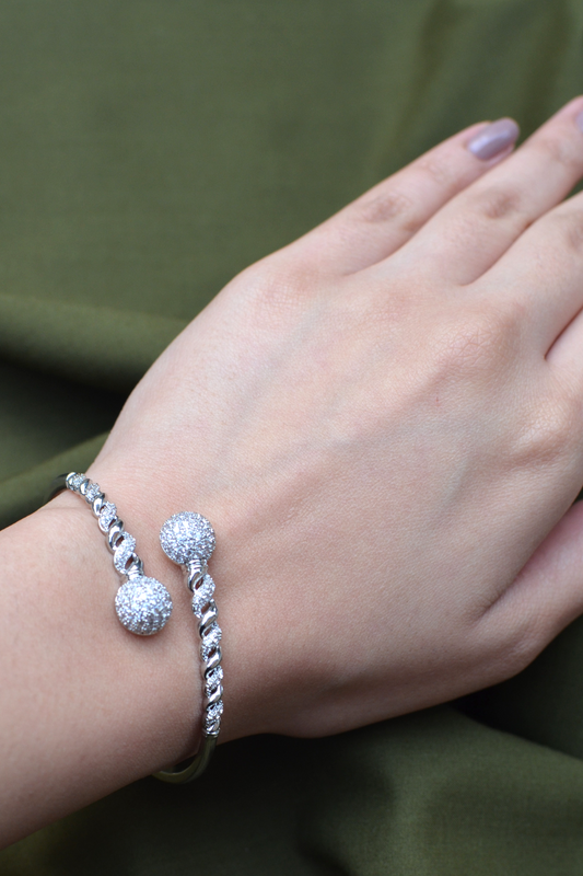 CRISS-CROSS WHITE-GOLD DIAMANTÉ CUFF BRACELET
