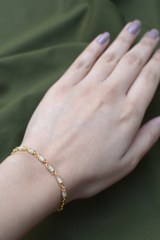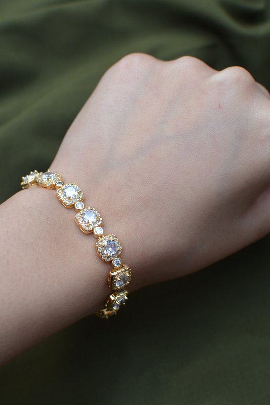 GOLD AND DIAMANTÉ SQUARE TENNIS BRACELET
