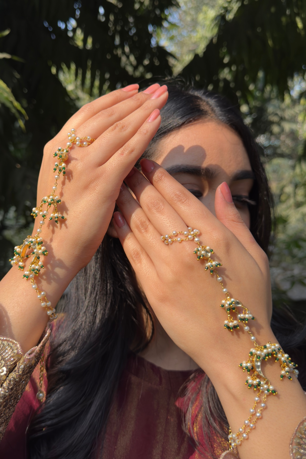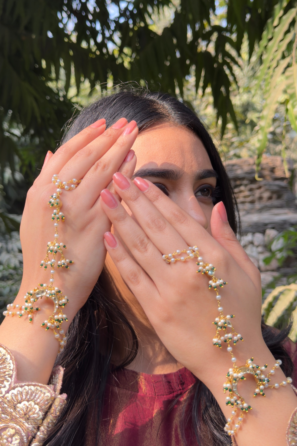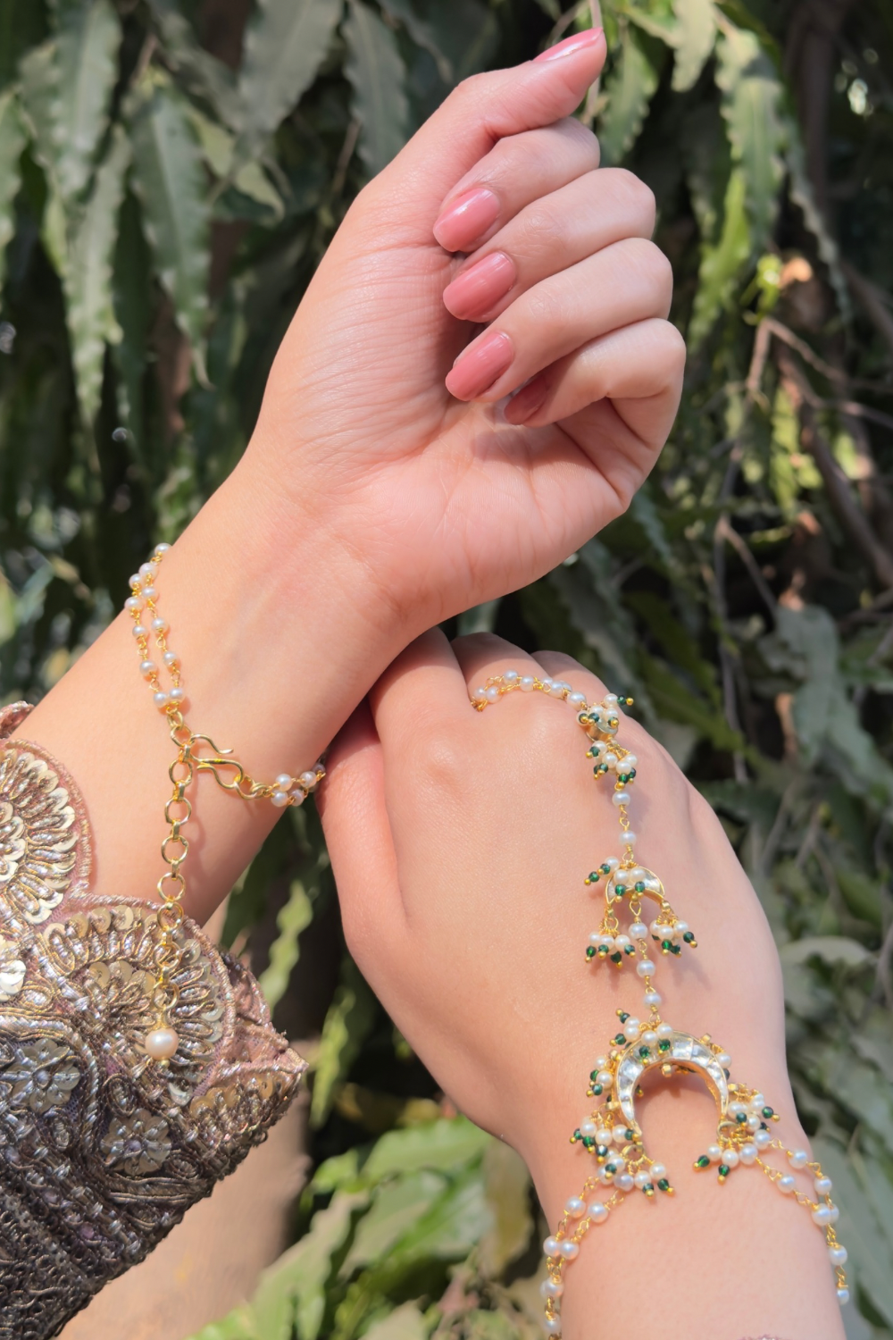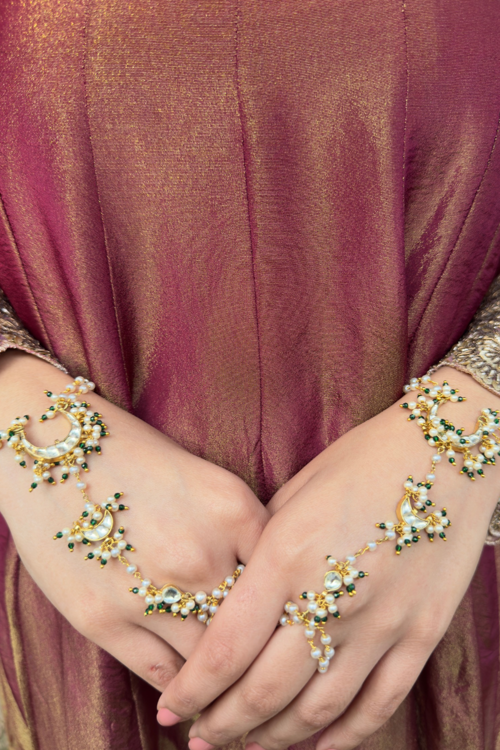 We use materials like shell pearls, copper alloy/brass metal, chains, natural and lab treated stones, carved and textured stones, beads, carved silver and gold look elements, polkis, etc.